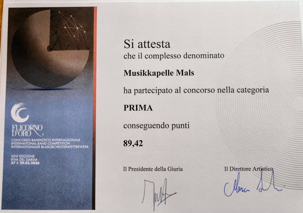 Wir stellten uns heuer, nach 2010 wiederum dem Urteil einer Fachjury beim internationalen Wettbewerb Flicorno D’oro vom 27.-29.03.2026